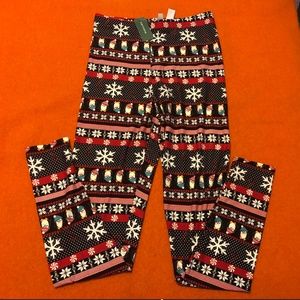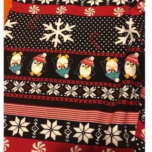 Festive winter holidays themed high rise stretch leggings new with tags. Snowflakes and cute pinguins in tuques, perfect for lounging around at Christmas. Stretchy poly and spandex weave, covered wide elastic waistband. Marked size M. This item comes from a smoke free, pets friendly home. Recycled bags/box used when possible. Please, let me know if you'd like any additional info. Thanks for watching!