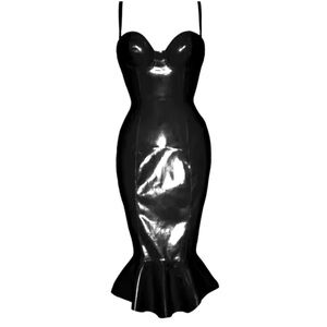 Unleash your inner diva with the Fetish S-6XL Plus Size Black PVC Leather Strapless Ruffle Mermaid Dress. This stunning piece is designed to accentuate your curves while providing a daring and bold look. The strapless design offers a flattering silhouette, while the ruffle detailing adds a playful touch. Made from high-quality PVC leather, this dress is not only eye-catching but also comfortable and easy to wear. Perfect for parties, themed events, or a night out, this mermaid dress will make you the center of attention. Embrace your unique style and make a statement with this must-have addition to your wardrobe!