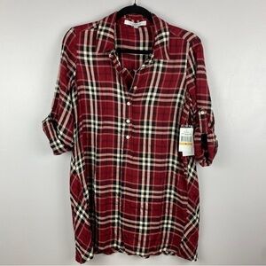 Fever Red Plaid Longline Popover Blouse Small NWT