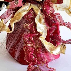 Fiberoptic Black Christmas Angel Tree Topper Irridescent Gold & Maroon Gown