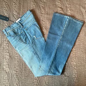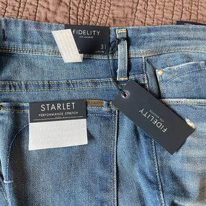 Saffron Fidelity Jeans High Skinny Flare (Slim through the leg with a flared opening for a sexy silhouette) Handcrafted in Los Angeles Shaper Denim Comfort Stretch 13 oz 92% Cotton, 8% polyester Front Rise: 9" Leg Opening: 22" Inseam: 35" New with Tags