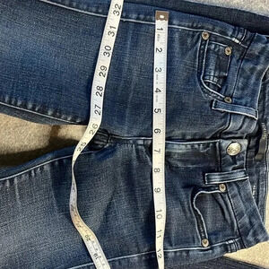 Fidelity Mid Rise Ultra Slim Blue on Blue Wash 24*30. Super stretchy and comfy. There is a small snag in the lower leg as shown in the pics otherwise these are in good condition.