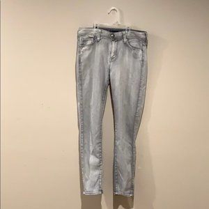 EUC Fidelity “Mila” grey (“chrome wipeout”) mid-rise ankle slim skinny jeans in women’s size twenty eight.