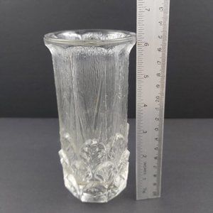 Fidenza Italy Leaf Embossed Frosted Glass Vase Heavy 6 x 3 inch Art Deco Style
