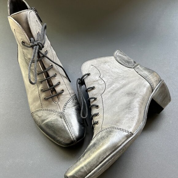 Fidji Boots, Brand New "Vintage" Look, Size 37, Rich Black and Grey Leather