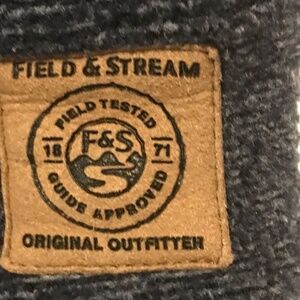 Field and Stream full zip men’s sweater. Thick pile, warm and cozy. Front zip pockets, lined high collar.