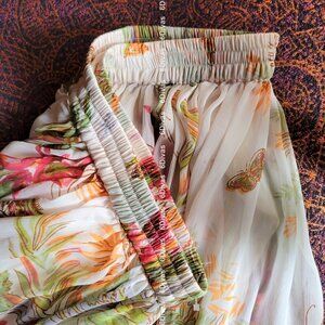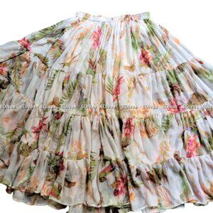 Fifteen Yard Skirt in Cream Beige with butterfly and bird motif