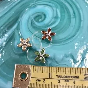 Brand new, never worn. Set of 3 flower rhinestone toe rings with elastic toe rings.