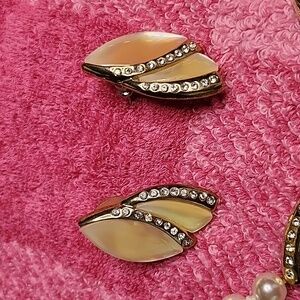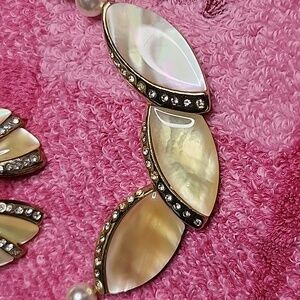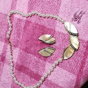 Fifth Avenue Collection Necklace & Earrings Faux Pearl & Abalone Hand Made