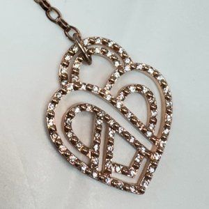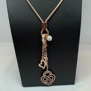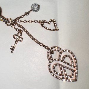 Fifth Avenue Collection Rose Gold Tone Necklace Heart & Key Pendants Rhinestones