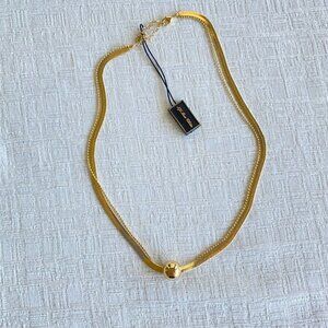Fifth Avenue Gold Tone Double Layer Choker Necklace New with Tag and box. Features a herringbone sleek chain + delicate ball chain with slide ball pendant for a minimalist look.
