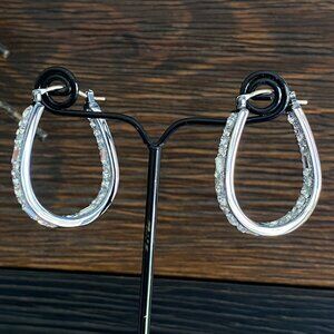 New with tag Fifth Avenue Gun Metal Swarovski Crystal Oval Hoop Earrings, Dazzling!!! Made exclusively with Swarovski crystals. Features rhodium plated high sheen gun metal with baguette & round crystals front half outward & back inside half encrusted showing a brilliant multi-dimensional effect, sparkling from every angle. Sterling silver posts, lead & nickel free, hypoallergenic.