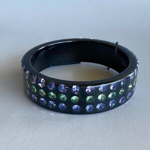 NWT in Box, Slip on Stunning glossy black bangle with 3 continuous rows of lavender & green inlayed crystals. interior circumference 8.5 around.