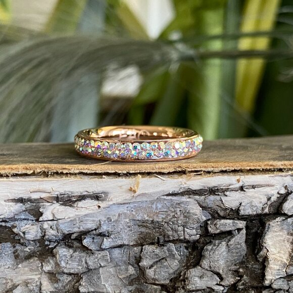 Fifth Avenue Rose Gold AB Crystal Eternity Ring Sz 7
