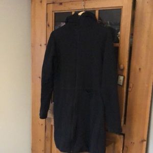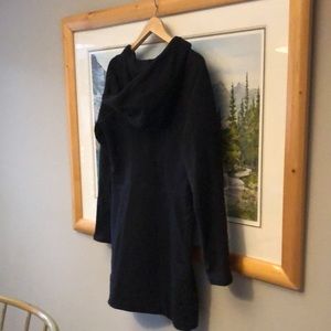 Fig 100% Cotton jacket. Dark blue, with full length zipper, with hood. Feels like a Terry cloth inside. laying flat 18” across the chest. Length is 33” from shoulder.