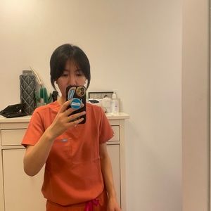 Terracotta. Top xs one pocket. Bottom small livingston pants.