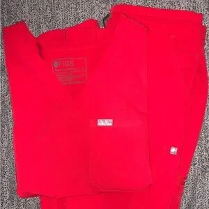 Figs scrub set in pop red (retired). Size small catarina top and size small tall yola skinny scrub pants. Only worn twice, just donβt like the way the pants look on me.