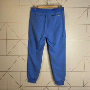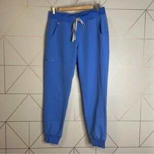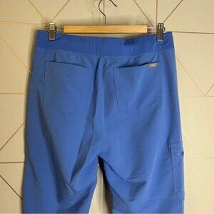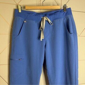 Figs Zamora Jogger Scrub Pants Ceil Blue in excellent pre worn condition. These are tailored-fit scrub pants designed for women, featuring a mid-rise waistband with adjustable drawstring, six functional pockets, and a comfortable, stretchy fabric blend. They combine practicality with style, offering a professional yet modern look. I believe these are ceil blue color. Note the color may be slightly off due to lighting. Please see all photos.