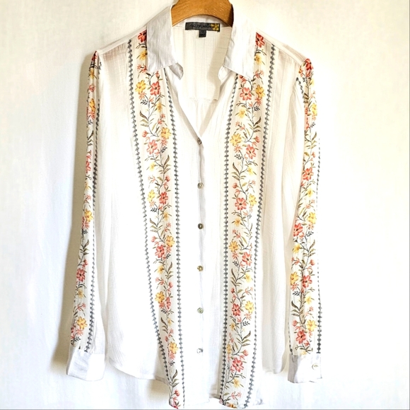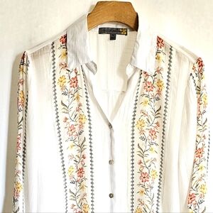 Figueroa & Flower White Long Sleeve Floral Print Button Blouse