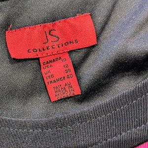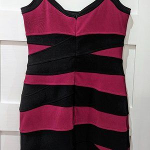 Magenta and black sleeveless cocktail dress. Very flattering for a curvy figure. Stretch knit fabric, lined.