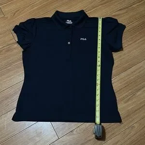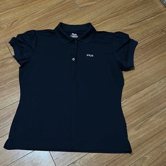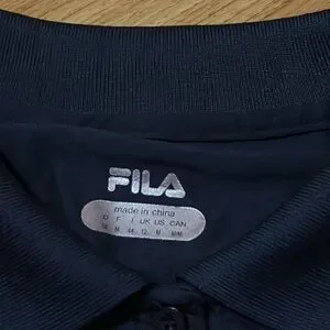 Size medium. Fila top. Collar. Dark blue in colour. See photos for measurements and as part of the description.