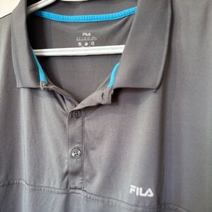 Fila Grey and Blue Mesh Polo Shirt - Size XXL