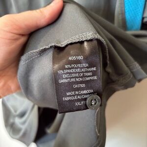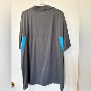 Performance grey polo with bright blue mesh side panels. Great for activewear or golf. PTP: 26in | Length: 32in
