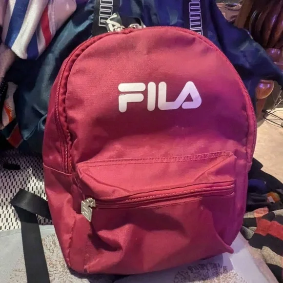 Stylish Fila backpack in a vibrant red color. Features a spacious main compartment and front zipper pocket.