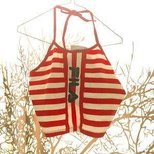 its a very cute red and white fila top it has not been worn at all and in perfect condition