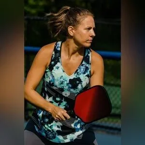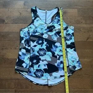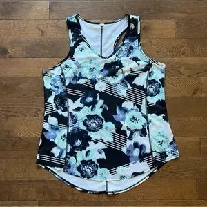 - Very pretty black, navy blue, mint green and white pattern lightweight athletic tank top