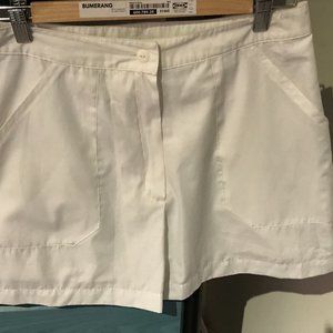Fila white lightweight nylon tennis skirt, big pockets on the sides, zipper at the front, made in Canada, lining, no shirts