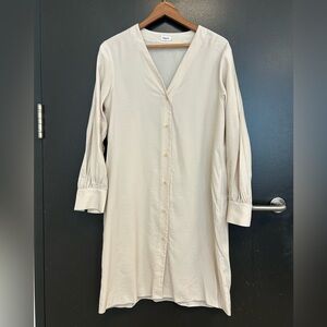 Filippa K “Isobel” size 4 (34) oversized (see measurements) cream Never worn dress shirt- detailed sleeved and tucked away pockets- viscose blend. Classic, quite luxury at its finest! Beautiful designer and classic forever in style dress.