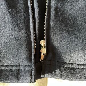 small pulls on back, minor. Zipper is finicky but works; be precise when placing one side into the other & it will zip. Functional but flagging as it takes delicate, patient touch! See pics