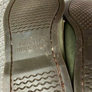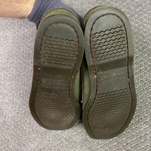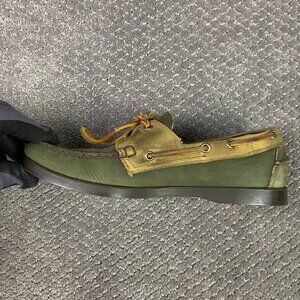 Filson Segago Docksides Shoes Mens 8 W Brown Green Boat Leather Canvas Tin Cloth