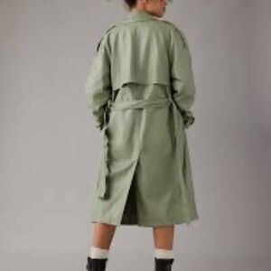 <Final Offer till 23rd> NWT AE Vegan Leather Trench Coat Olive Color