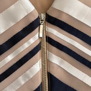 Finders Keepers Hurricane top, size x-small. Striped and sheer overlay over nude fabric. Gold back zipper. Non-stretch fabric; 65% polyester, 35% nylon / lining: 100% polyester.