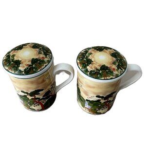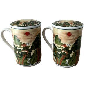 Fine China Oriental Tea Mug with Lid Set 2 by Bossigi