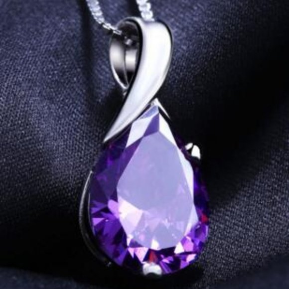Fine Jewelry 925 Silver Amethyst Teardrop Necklace