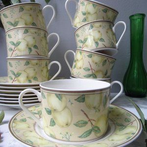 Fine Porcelain Set 8 mugs & 8 Saucers Apple Orchard by Stokes Casual MagnaStrong
