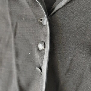 Elegant hand made Italian sweater with Satin trim and covered buttons. This is a fitted top, with darts at the chest, not really a cardigan. The wool is so fine, I didn't even realize it was wool until I saw the label! No damage or wear that I can see. the was my Mother's when she was a teenager.