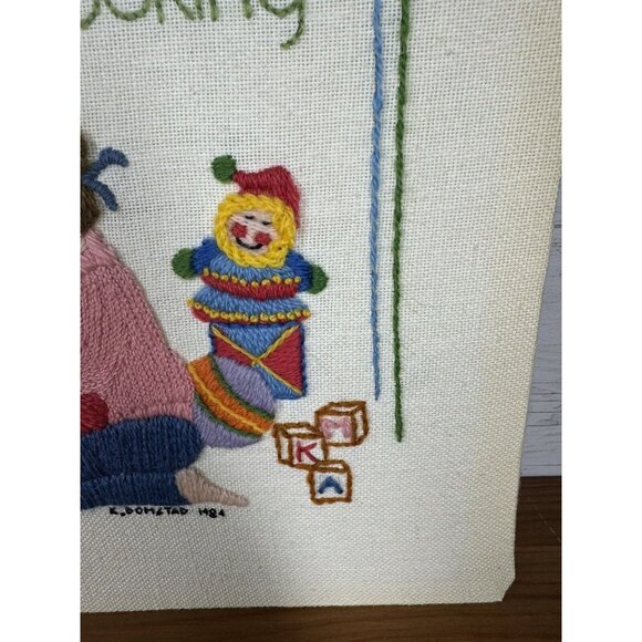Finished Crewel Embroidery Mother Children Grow Up Dimensions Completed Vtg 1981