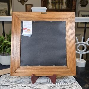 Framing: Professionally mounted and framed in a sturdy, medium-toned light oak wood frame with a visible grain, giving it a classic, rustic feel. The backing is sealed, and it is ready to hang with a sawtooth hanger.