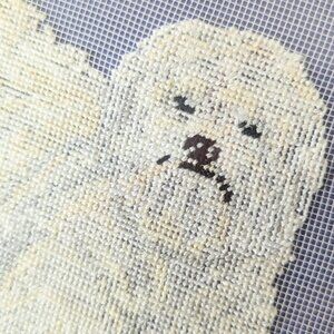 Finished and framed needlepoint / cross stitch art Maltese dog portrait
