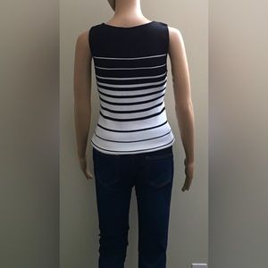 Black & White Striped Knit Tank Top. Lots of Stretch 63% Rayon, 37% Nylon Size Large 21” Length 28” Bust