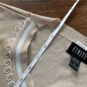 Finity Tan Embroidered Cardigan Sweater M Neutral Nude Lightweight