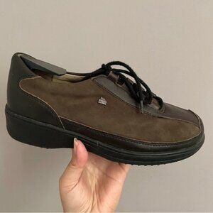 Vintage pair of Finn Comfort Dark Chocolate Brown Nappa / Nubuck Leather Lace-up Oxford Shoes - 3UK. Handmade in Germany.