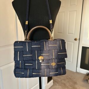 Fiona Navy and Gold Woven Straw Purse