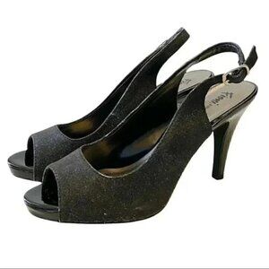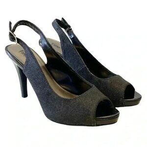 Fioni Night Slingback High Heel Evening Sandals Peep Toe Black Size 8