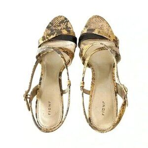 Fioni Strappy High Heel Sandals Snakeskin Tan Brown Faux Leather Size 7.5