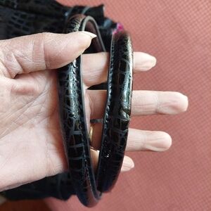 Fiorelli Black Mock-Croc Embossed Shoulder Bag. Great length on double straps for over shoulder. Excellent condition. Zippered back outside compartment. 2 top zippered closures plus center top snap closure creating 3 large secure compartments.